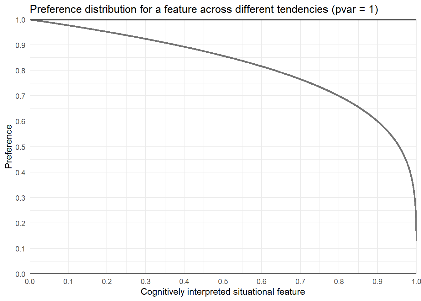 title ="Preference distribution for a feature across different tendencies (pvar = 1)")